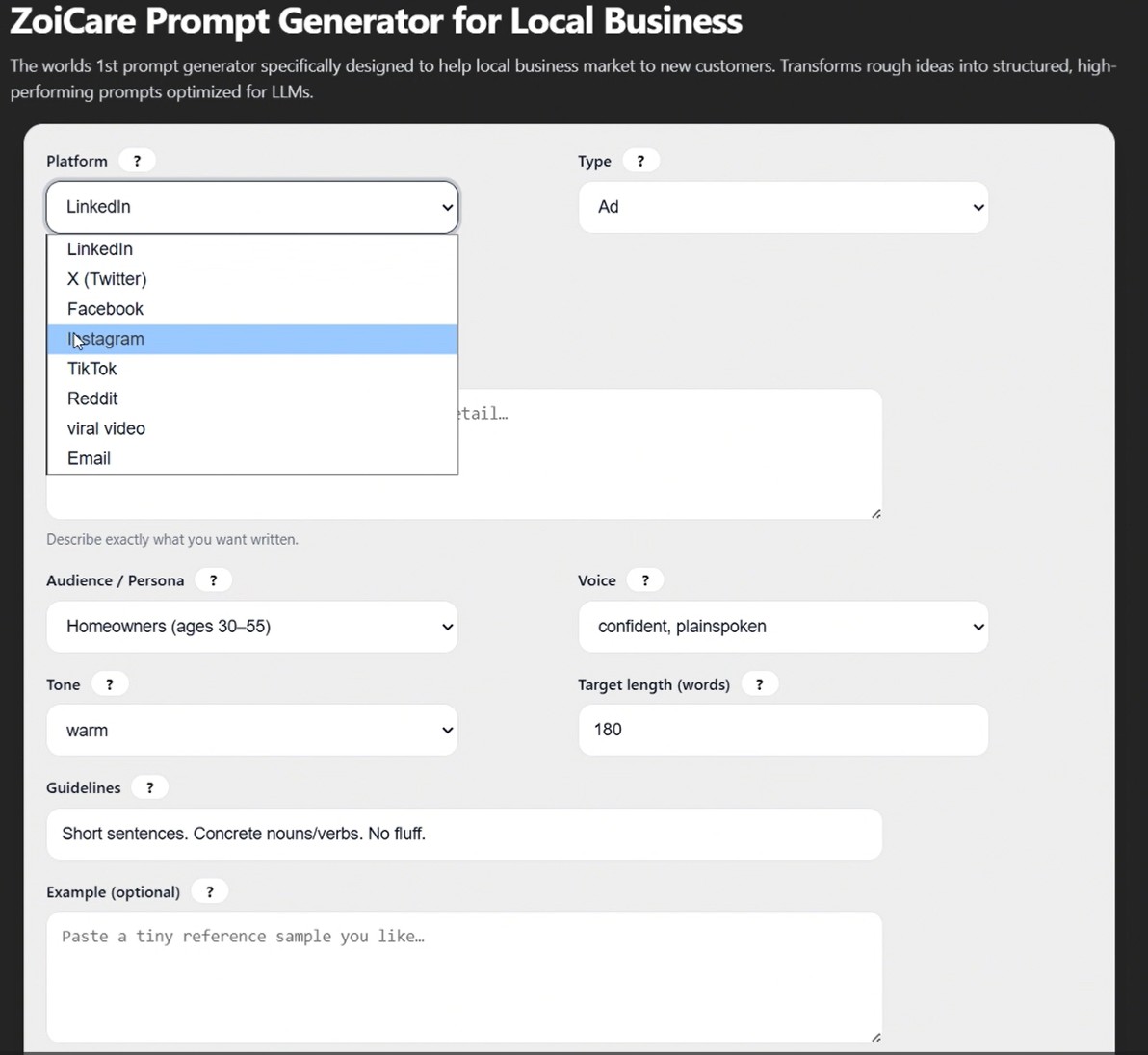 That is why we custom developed the worlds 1st AI Prompt Generator specific to local businesses.